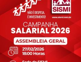 No dia27 de fevereiro de 2026, a partir das 18:00 horas, a diretoria do SISMI estará realizando a AGO da Data Base, para apresentação, discussão e deliberação das cláusulas econômicas, sociais e sindicais, que após aprovação serão encaminhadas à Administração Municipal. Entre os dias 03 e 18 de fevereiro, através de um formulário eletrônico disponibilizado …